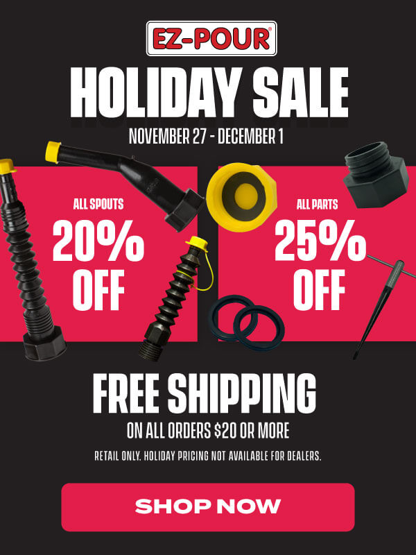 EZ-POUR® provides universal replacement spouts and vent kits for gas, diesel, and water cans so you can pour fluid easily from your can. Our flexible nozzles will help prevent spillage while reaching even the most difficult engines!